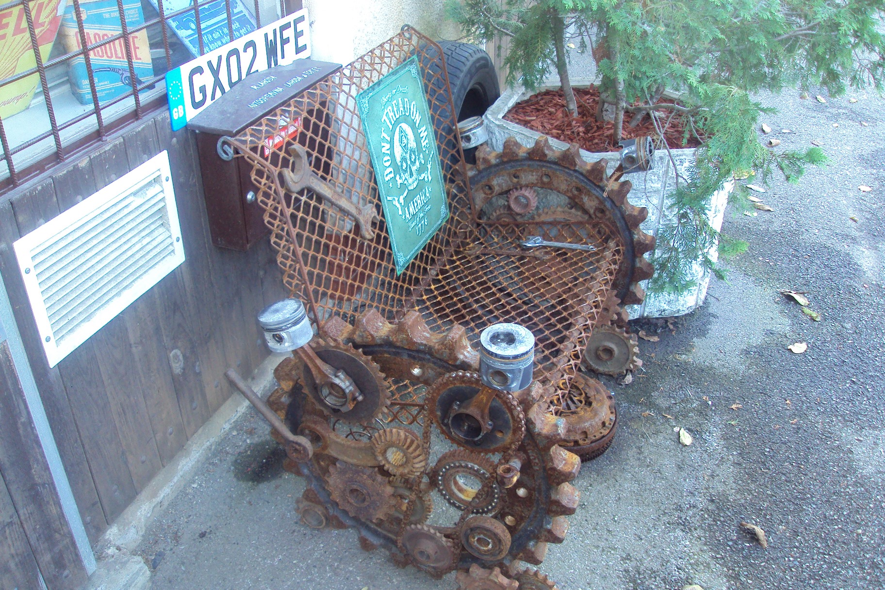 Celý život mě bavilo opravovat auta a motorky a myslel jsem, že u toho i skončím. Ale asi ve mě dřímal i nějaký umělecký duch, který se teď ve mě probudil, a začal mi do hlavy sunout různé nápady, jak ještě zužitkovat staré železo vyhozené do šrotu a použité součástky z motorů, převodovek a zemědělských strojů. A protože od myšlenky jsem nikdy neměl daleko k činům, udělal jsem pár výtvorů a ty rozestavěl kolem autodílny…. No abych pravdu řekl, reakce okolo jdoucích mě dost překvapila (příjemně). Prý proč opravuji auta a víc netvořím…? 🙂 A tak vznikly tyto stránky, abyste vy, kteří jste sem zabloudili snad i jen nějakou náhodou, si třeba řekli: ,,Hele to se mi líbí, to chci“ ! Někomu se líbí kočka, někomu motýl, někdo by chtěl draka…. udělat se dá cokoli. V galerii je jen to, co jsem už udělal a nic už neudělám totožně ! Vše je naprostý a jediný originál ! A tak tomu bude i nadále, nebaví mě dělat něco dvakrát stejně 🙂 Takže pokud vás něco zaujalo nebo máte vlastní nápad, čím by se vám líbilo oživit a zkrášlit třeba zahradu, byt nebo klub či bar, kontaktujte mě na mailovou adresu nebo přímo telefonicky…, jsem na příjmu téměř stále.
